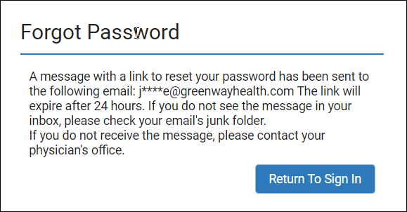 Select either Return to Sign In or the link to MyHealthRecord.com in the email to return to the Sign In screen. Enter your username and password and select Continue.