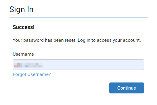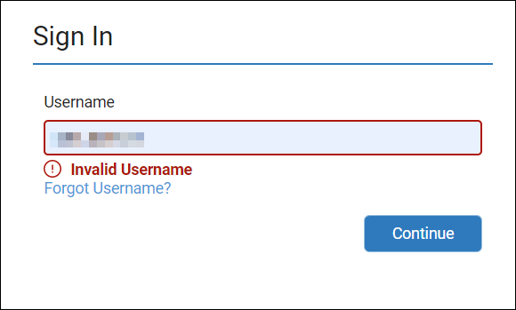 If you enter in the wrong username, you will see the message "Invalid Username" Reenter your username and then select Continue. If you continue to have difficulty, contact your provider.