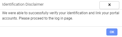 Your accounts are then linked. Select OK to go to the log in page. To learn more about managing an account with multiple practices, see the topic My Account.